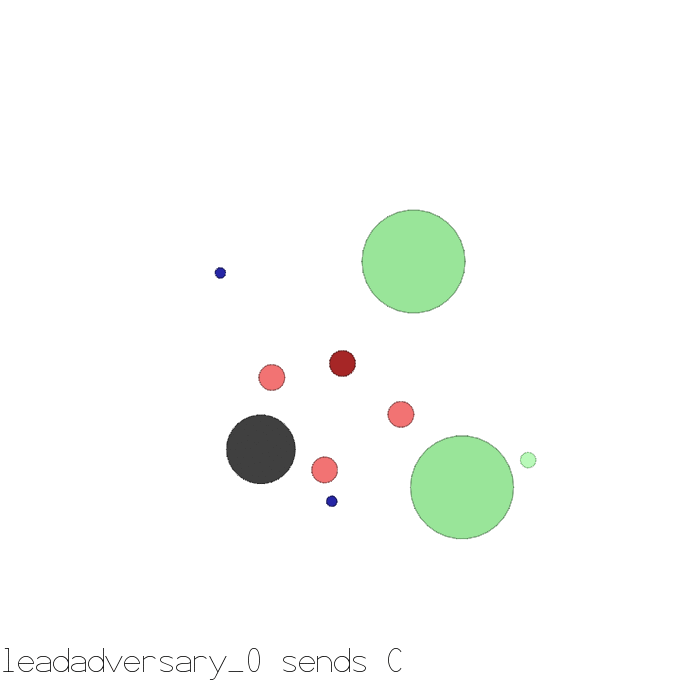 The Simple Adversary, Simple Crypto, Simple Push, Simple Tag, and Simple World Comm environments are adversarial (a “good” agent being rewarded means an “adversary” agent is punished and vice versa, though not always in a perfectly zero-sum manner). In most of these environments, there are “good” agents rendered in green and an “adversary” team rendered in red.